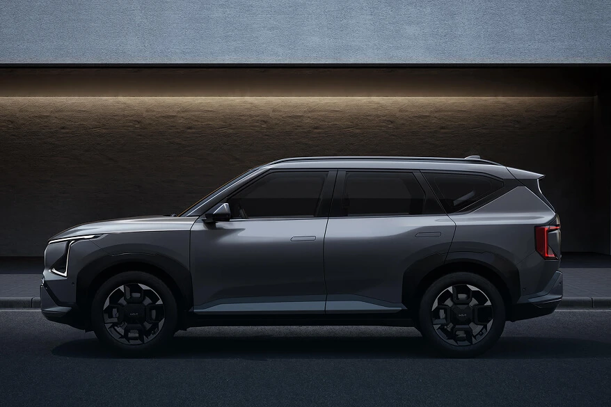 Flush door handles reduce drag coefficient, and a three-dimensional side garnish reinforces the Kia EV5’s solid stance, while an extended D-pillar enhances its interior spaciousness.